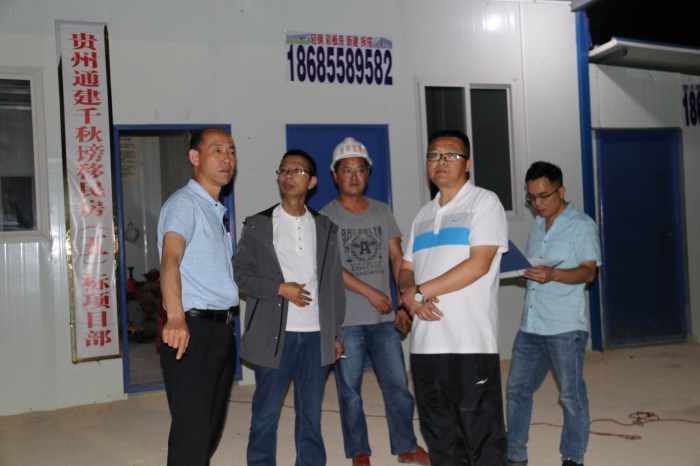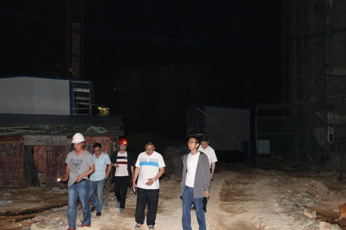 公司总经理李祖培陪同县领导夜查易地扶贫安置施工工地